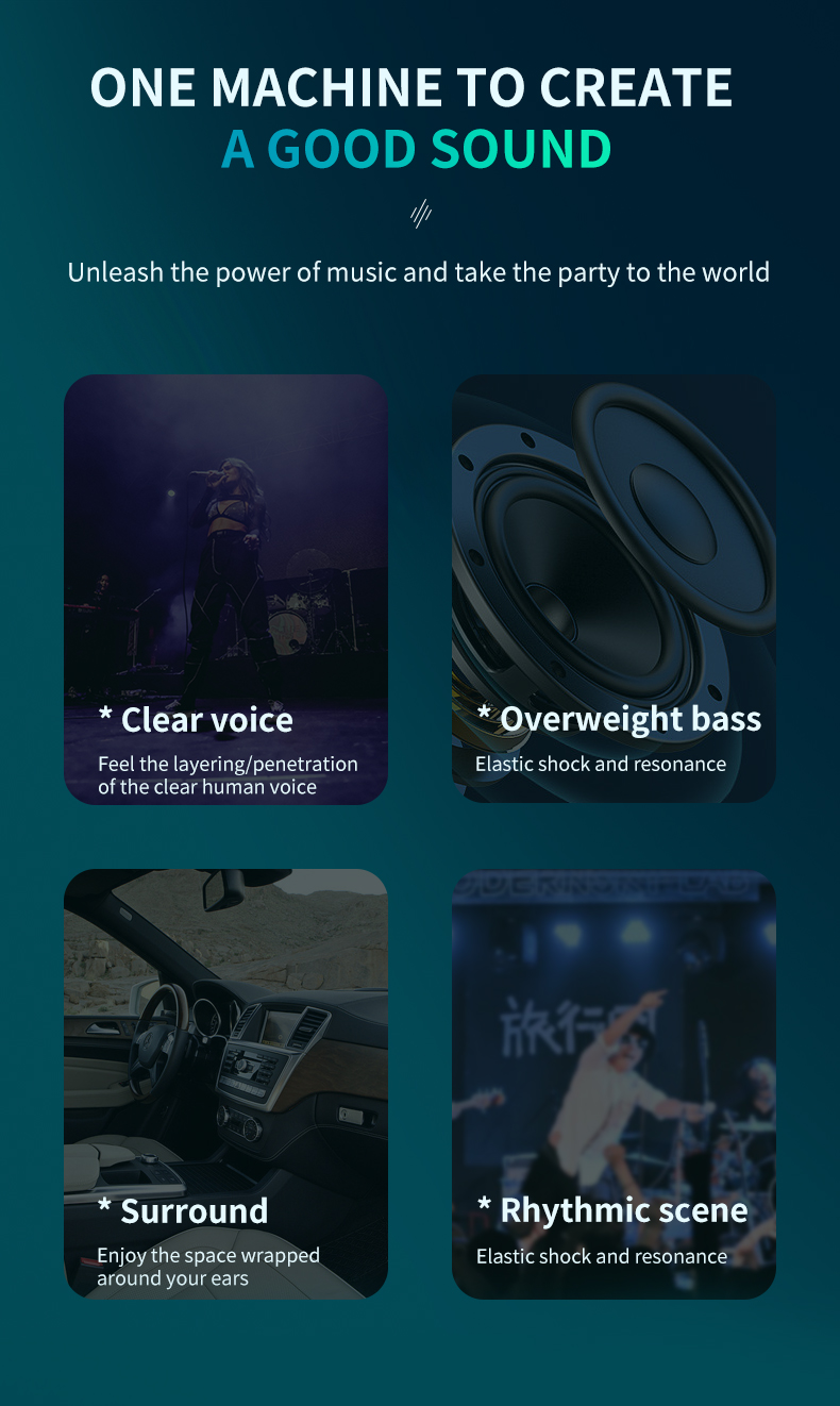 - Support independent adjustment of volume, treble, bass and microphone volume.