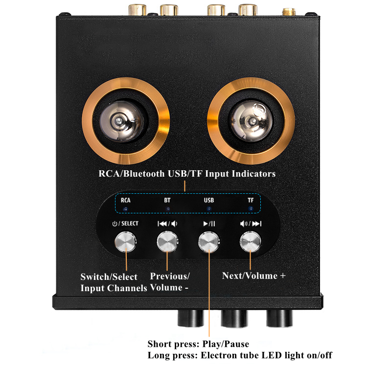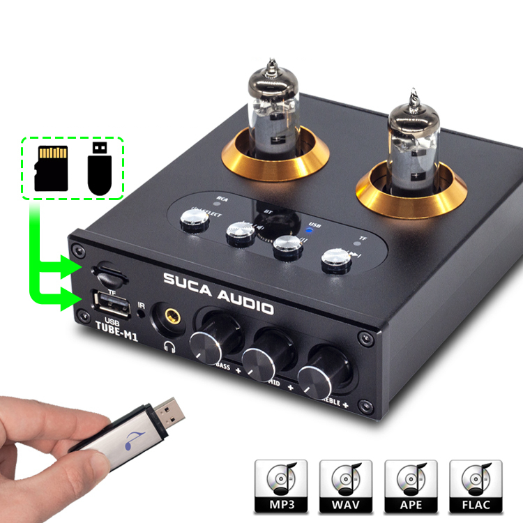 - Support U disk and TF card input. TUBE-M1 is also a digital music player, supporting lossless format music such as MP3/WAV/APE/FLAC