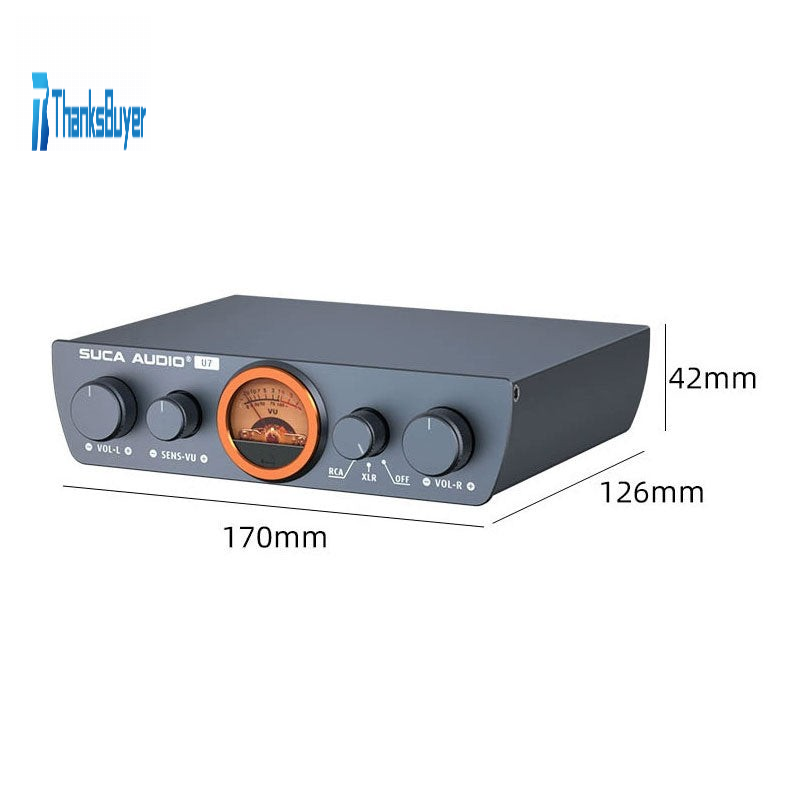 - Small volume helps save desktop space. Mini size, excellent performance and gray aluminum alloy case and embedded VU meter are designed for audiophiles looking for HiFi sound quality.