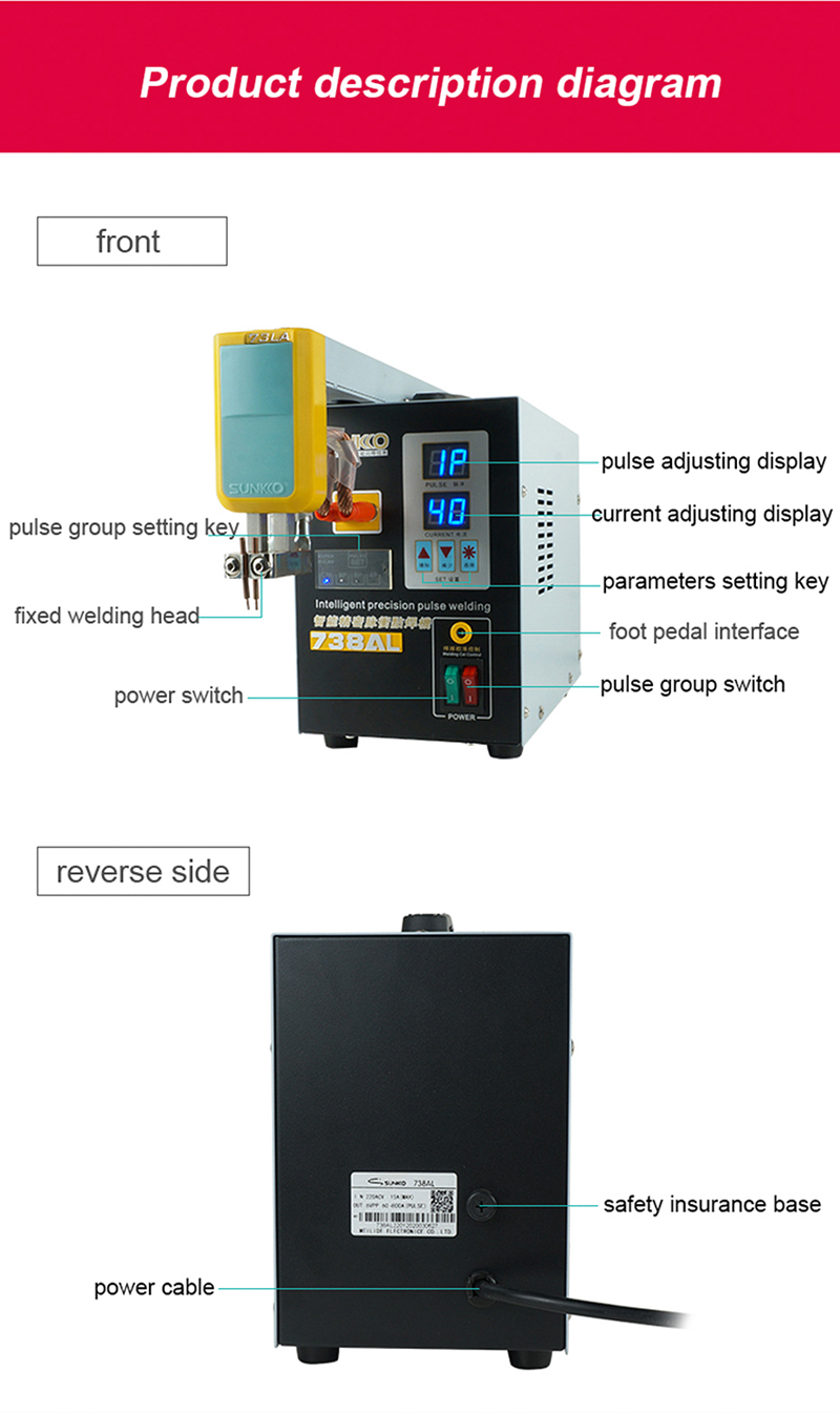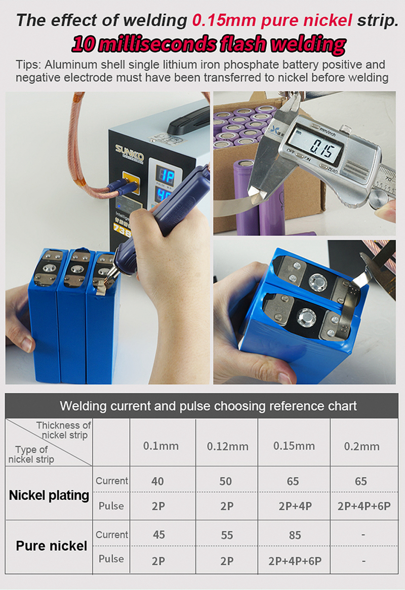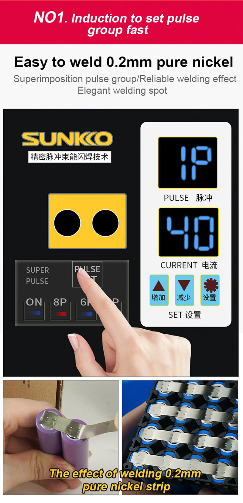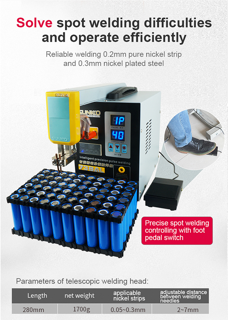 SUNKKO 738AL 18650 Battery Spot Welder Pulse Spot Welder + 73LB Welding Arm + 70BN Welding Pen