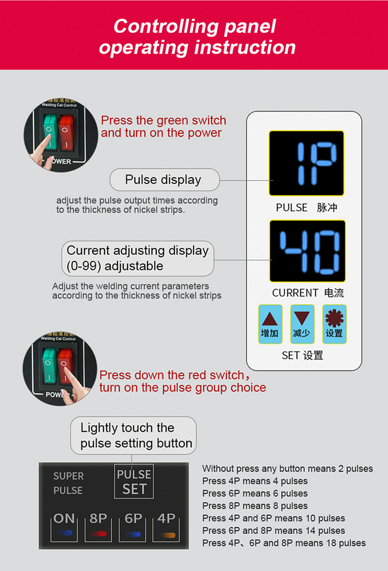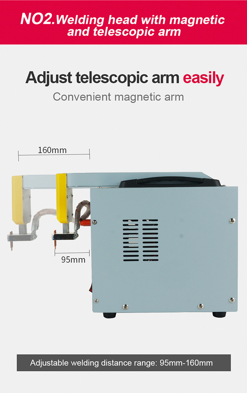 - Distance of telescopic welding arm: 95~160mm (adjustable)