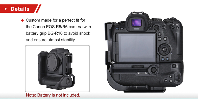 SUNWAYFOTO PCL-R5G L Bracket Quick Release Bracket For Canon EOS R5/R6 With Battery Grip BG-R10