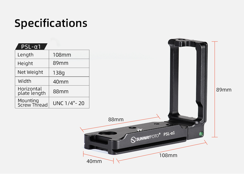 SUNWAYFOTO PSL-α1 L Bracket Quick Release Plate Suitable For Sony A1 Camera Tripod Vertical Shooting