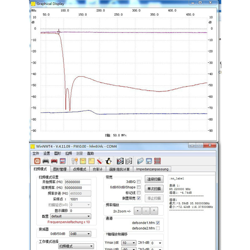 - Turn on the tracking source output bandwidth 35mhz-3000mhz