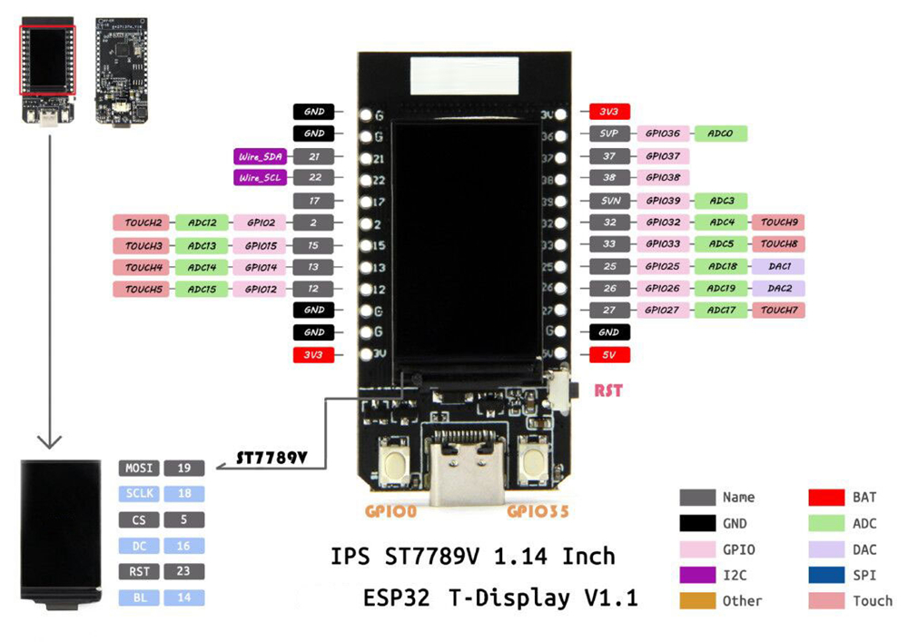 T-Display ESP32 WiFi Bluetooth Module 1.14" ESP32 LCD Display Development Board For Arduino