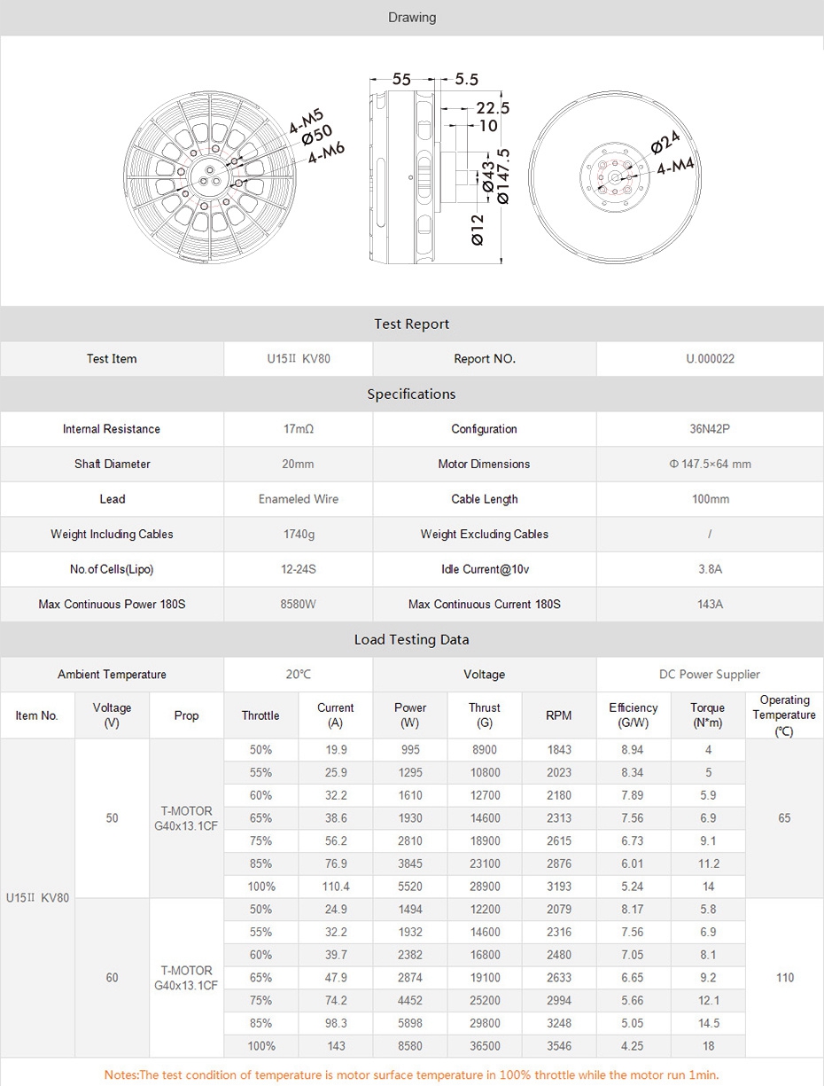 - Motor dimensions: 147.5 (diameter) x 64mm