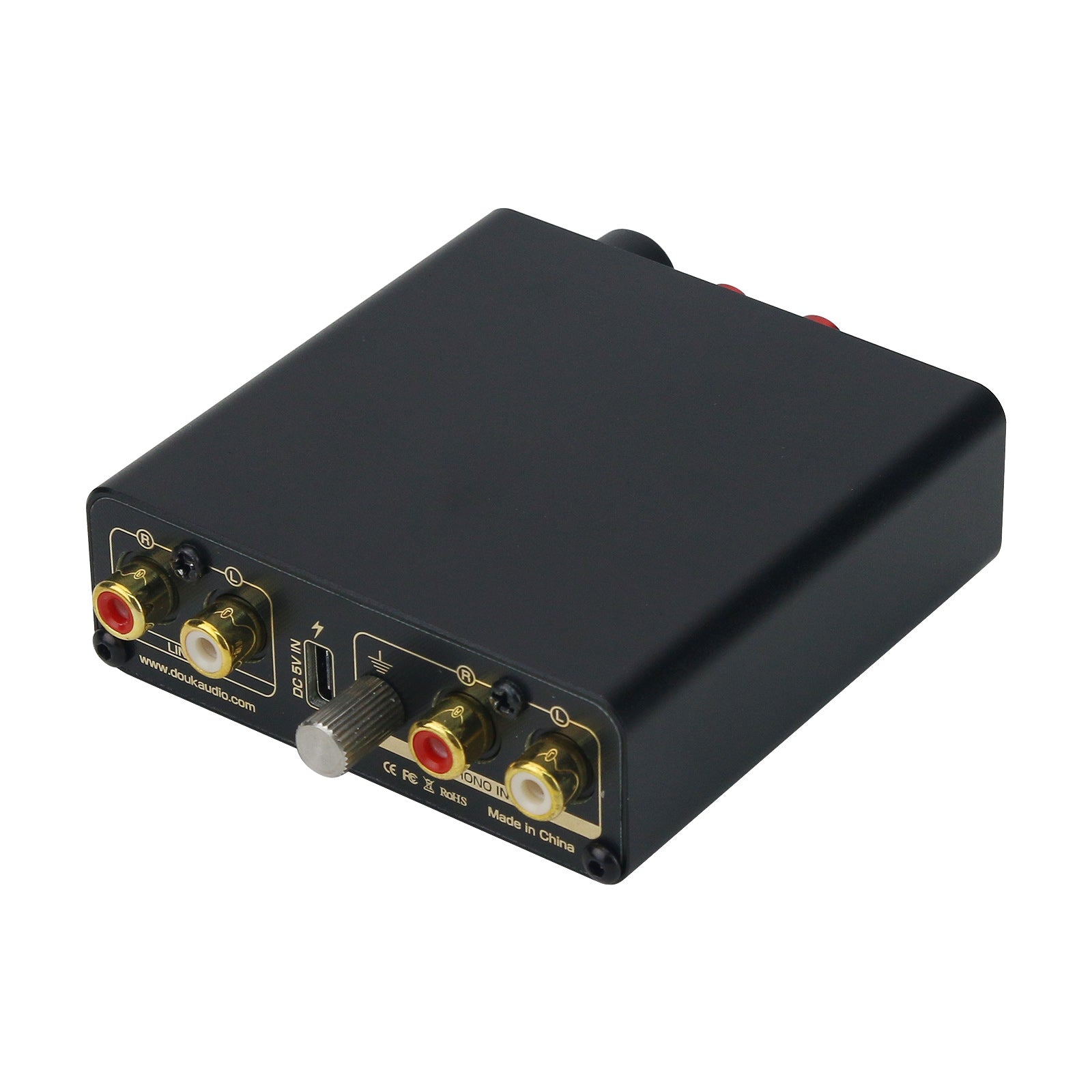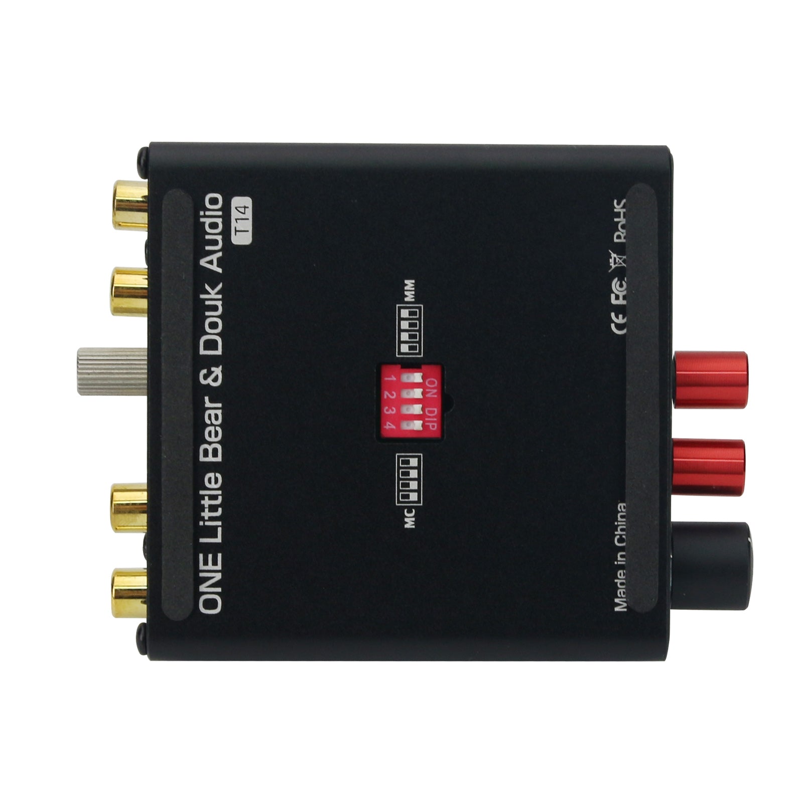 - MM/MC phono preamp: converts phono signal to line level signal, low-noise integrated circuits and high-quality components are designed to ensure clear sound; with a MM/MC switch on the bottom, easy to select to match different kinds of turntables.