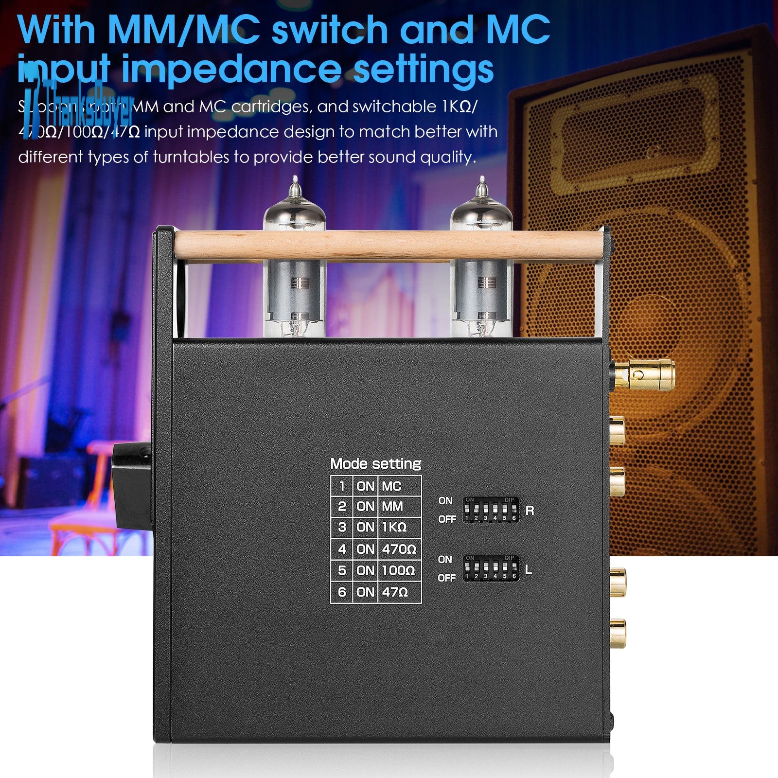 - With MM/MC switch and MC input impedance setting: Support MM and MC cartridges at the same time. Switchable 1KΩ/470Ω/100Ω/47Ω input impedance design can better match different types of phono players to provide better sound quality
