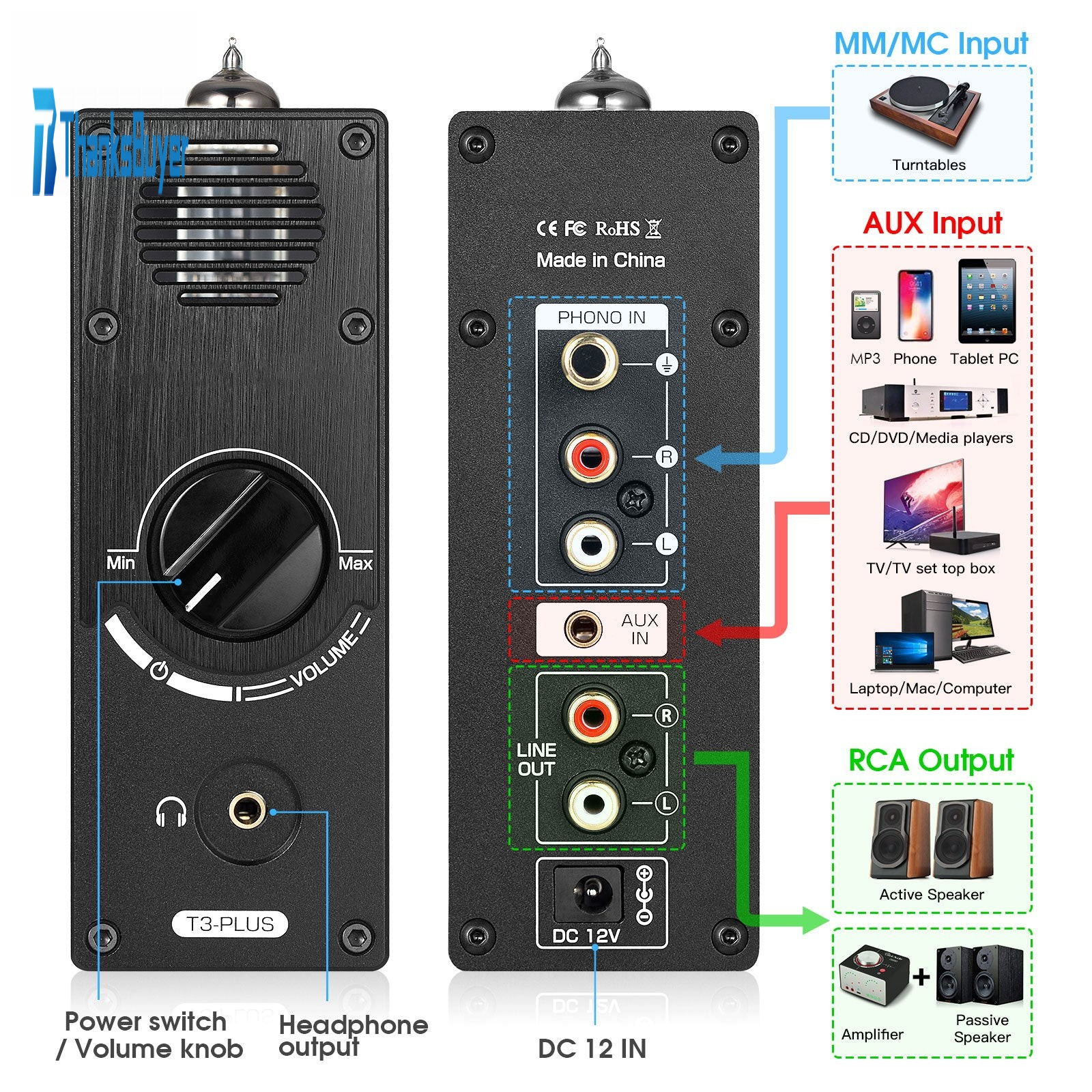 T3-PLUS MM MC Phonograph Preamp Phono Preamplifier Vacuum Tube Phono Preamp Headphone Amp