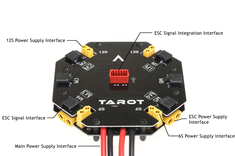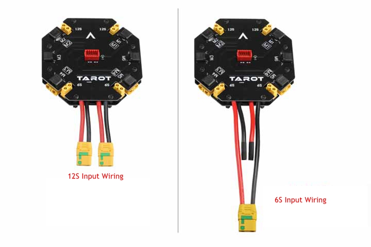 - Power distribution management module 12S power supply is composed of two 6S batteries in series, so two batteries need to be plugged in to provide power supply.