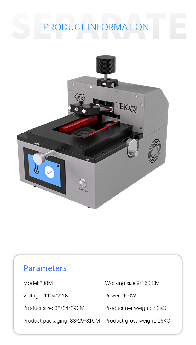 TBK-288M Intelligent Control Screen Separator Manual Lifting for Mobile Phone Screen Removal and Repair