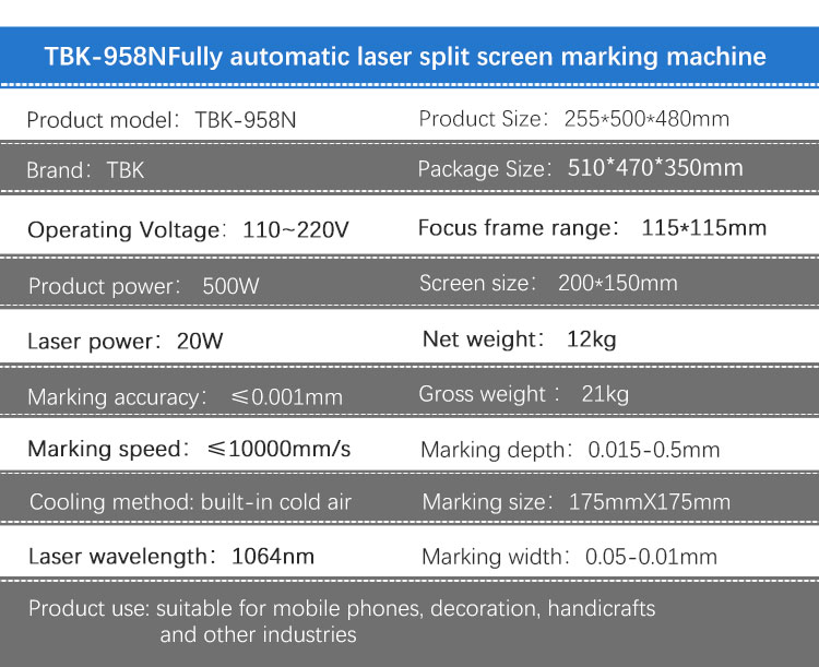 TBK958N Multifunctional Portable Laser Machine 20W Automatic Screen Separator for Marking and Engraving