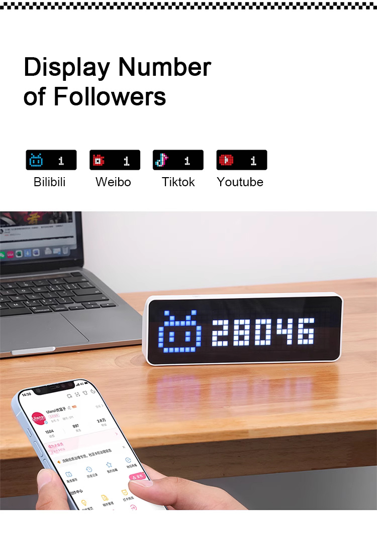 TC001 Desktop Pixel Clock Weather Station Clock Wifi Clock for Kitchens Offices Bars Influencers