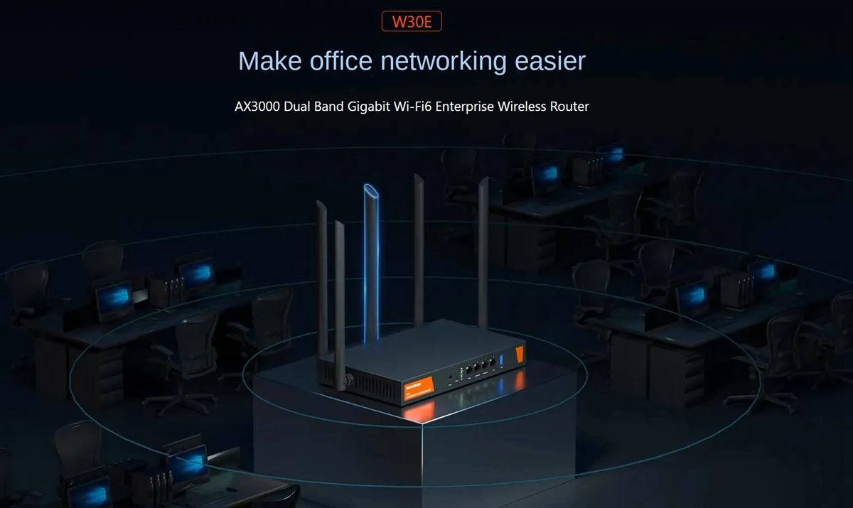 W30E is a brand-new Wi-Fi 6 enterprise-class wireless router specially designed for network deployment in SOHOs, SMEs, and small shops. It supports up to 3000 Mbps dual-band concurrency rate and 160MHz large bandwidth, which is about 155% faster than the mainstream 1200M Wi-Fi 5 routers. It's equipped with 2x2 MU-MIMO, OFDMA and other features, providing stable high-performance experience even in multi-user large scenarios. W30E adopts built-in enterprise-level functions such as user behavior management, AP management, VPN, attack defense, portal authentication to help enterprises develop efficiently.