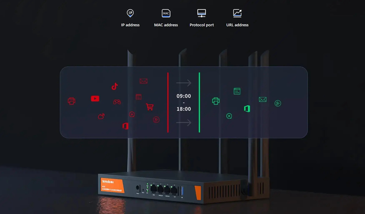 Comprehensive Internet behaviour management enables efficient office networks. W30E supports URL filtering to restrict employees' access to certain websites, effectively regulating employees' online behaviour and enhancing their work efficiency. It also supports internet access time setting, one click configuration, effective in real time.