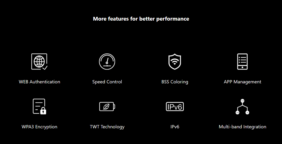 3000Mbps high speed and 160MHz large bandwidth turn videoconferencing to face-to-face talking. W30E supports the new generation of Wi-Fi 6 technology, wireless rate up to 3000Mbps, 160MHz large bandwidth. Compared to traditional WiFi6 routers, the Internet speed is doubled. Even 4K ultra-HD video conferences can be easily managed as if it were face-to-face, smoothly and efficiently.