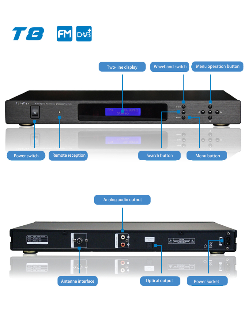 ToneMax T8 FM/DAB/DAB+ Digital Tuner Global Version 76-108MHz Hifi Tuner with Optical Output
