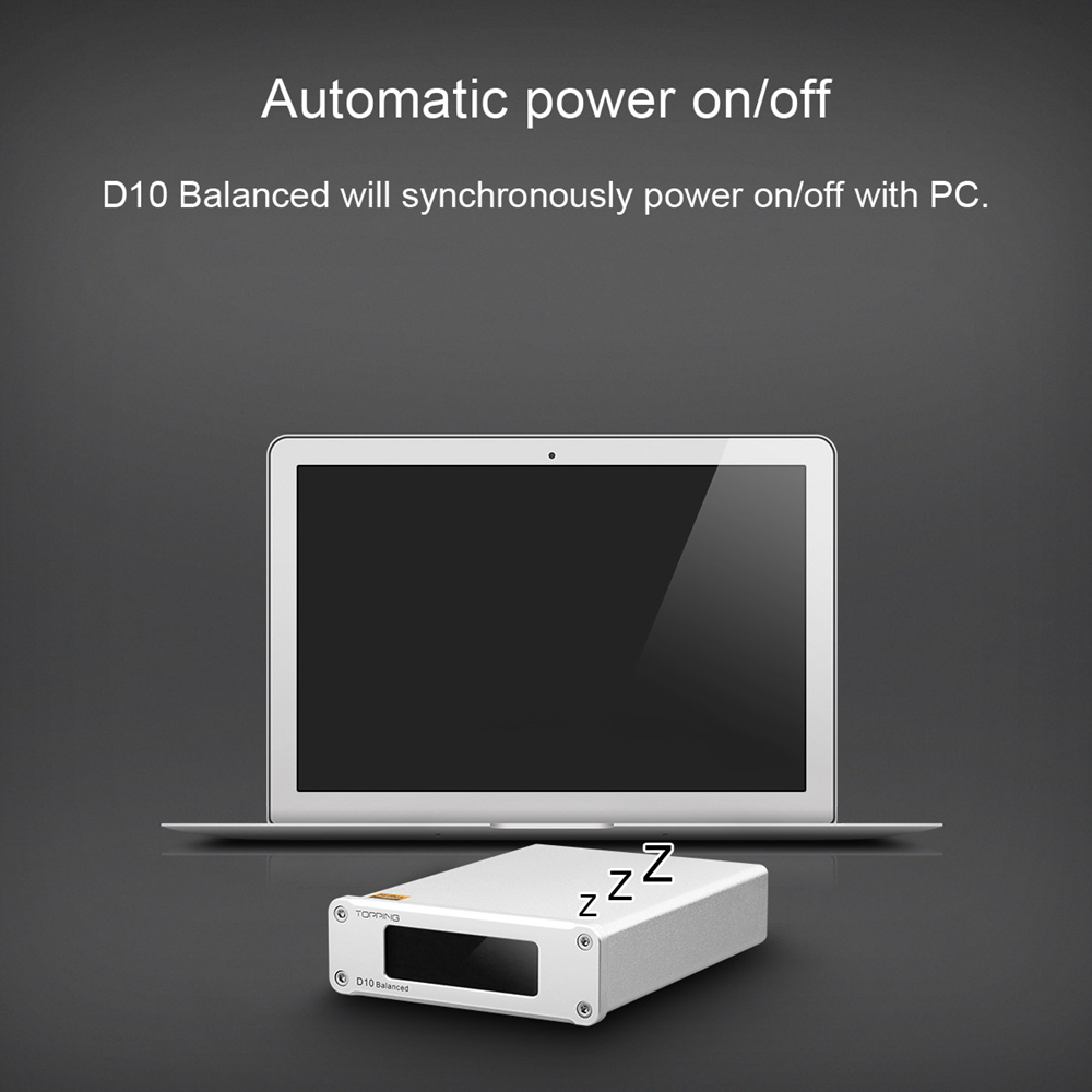 - Automatic power on/off: D10 Balanced will synchronously power on/off with PC