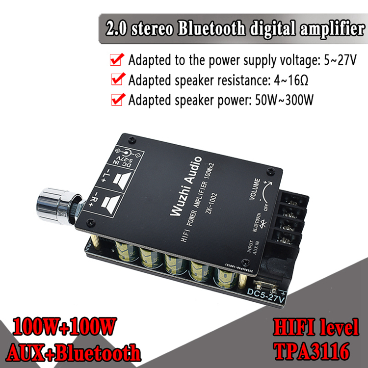 TPA3116 Amplifier Bluetooth HiFi Power Amplifier Board 100Wx2 AUX + Bluetooth Inputs 1002 HIFI