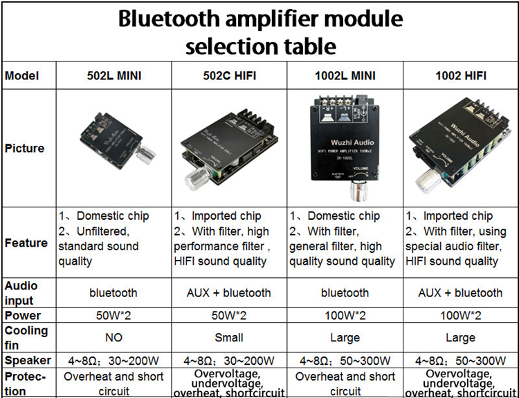 A3: Power on the amplifier board, connect to your speaker, rotate the volume knob, and Blue indicator is lit. Open your phone settings-Bluetooth-search for "BT-WUZHI", and then click to connect. When it connects successfully, there will be a ding dong sound. Now it is in Bluetooth mode, you can play music. It will automatically reconnect with your phone next time it is powered on.