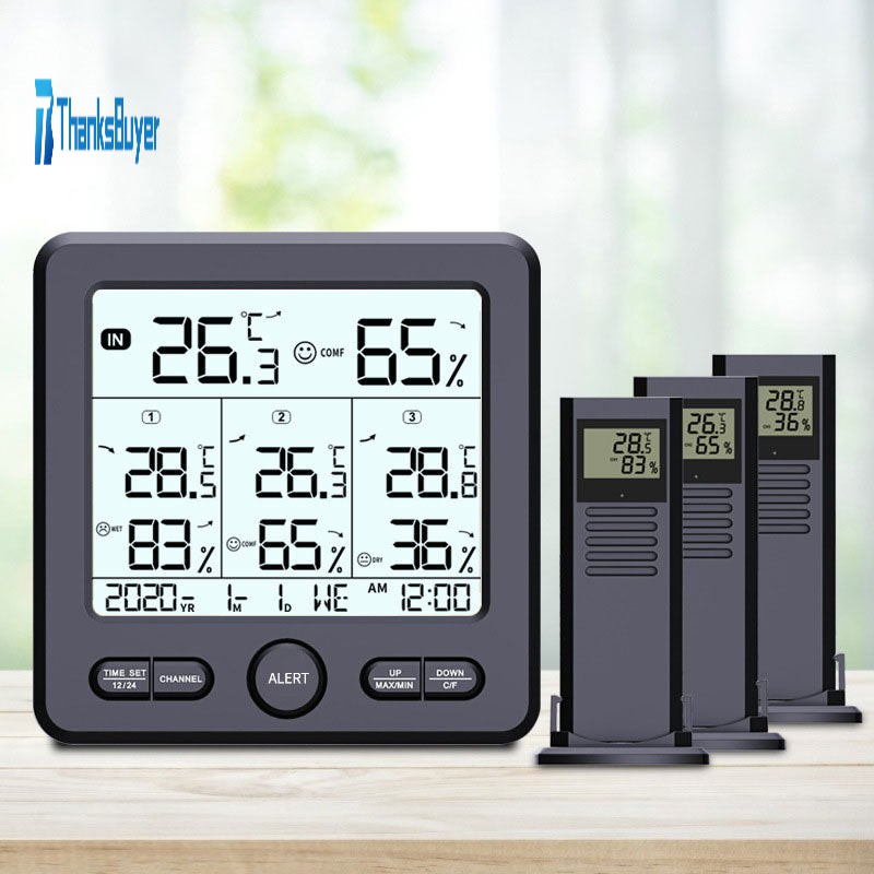 TS-6210-B Black Wireless Digital Thermo-hygrometer with 4.72-inch Screen Real-time Temperature and Humidity Detector