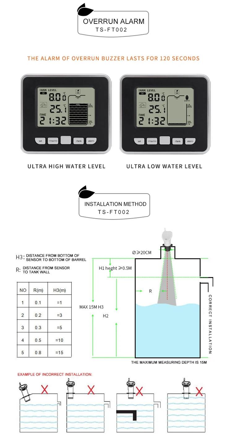 TS-FT002 1-15m Ultrasonic Liquid Level Gauge Water Pump Automatic Control Box IP65 Waterproof with 3.15-inch Screen
