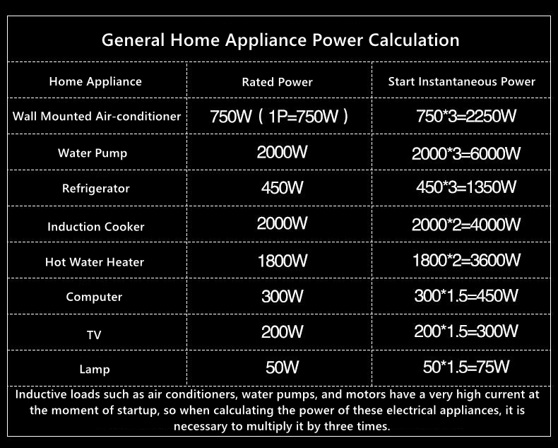 - When selecting equipment with electric motors such as refrigerators, air conditioners, and water pumps, a voltage regulator with a capacity of three times or more should be selected to prevent the starting current of the equipment from exceeding the current of the voltage regulator fuse or overcurrent protection circuit breaker. The current may cause the voltage regulator fuse to melt, the circuit breaker to trip, or the voltage drop to be too large to work.