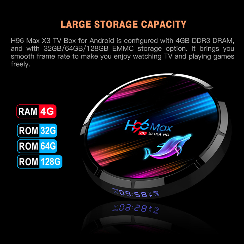 TV Box 8K Ultra HD TV Set Top Box w/ Digital Display For Android 9.0 MAX X3 S905X3 (4+128G)