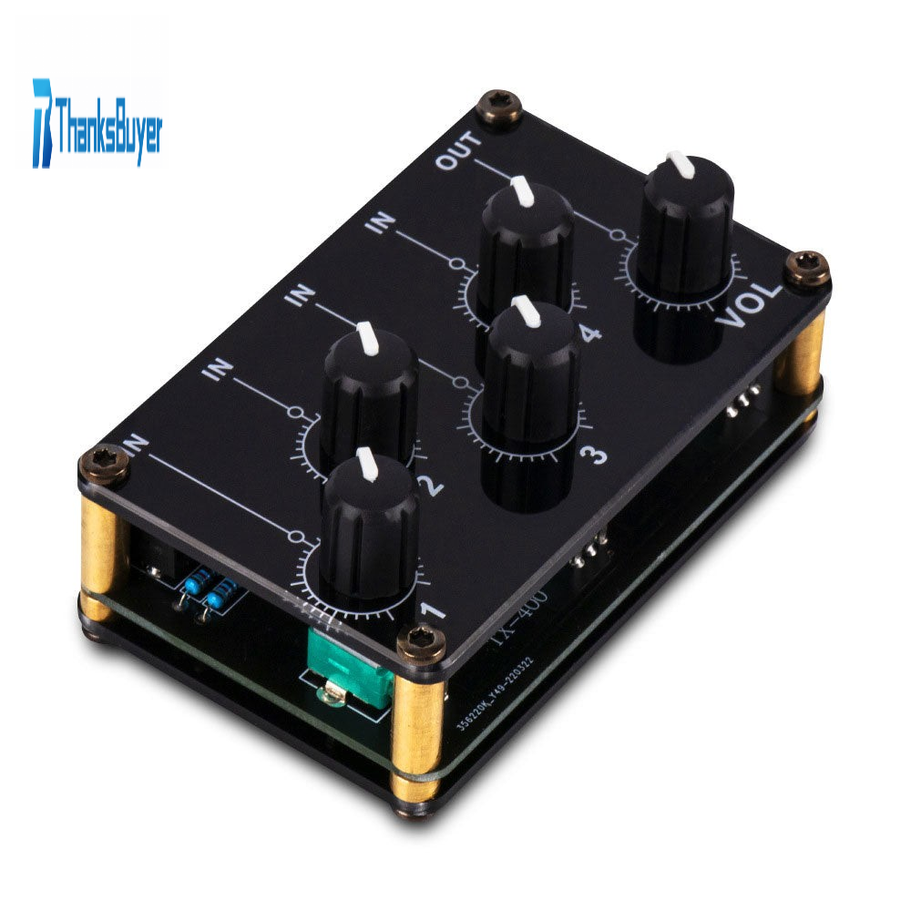 TX400 Stereo Audio Mixer Acrylic Shell Passive Circuit Design with 4 Independent Input Volume Knob