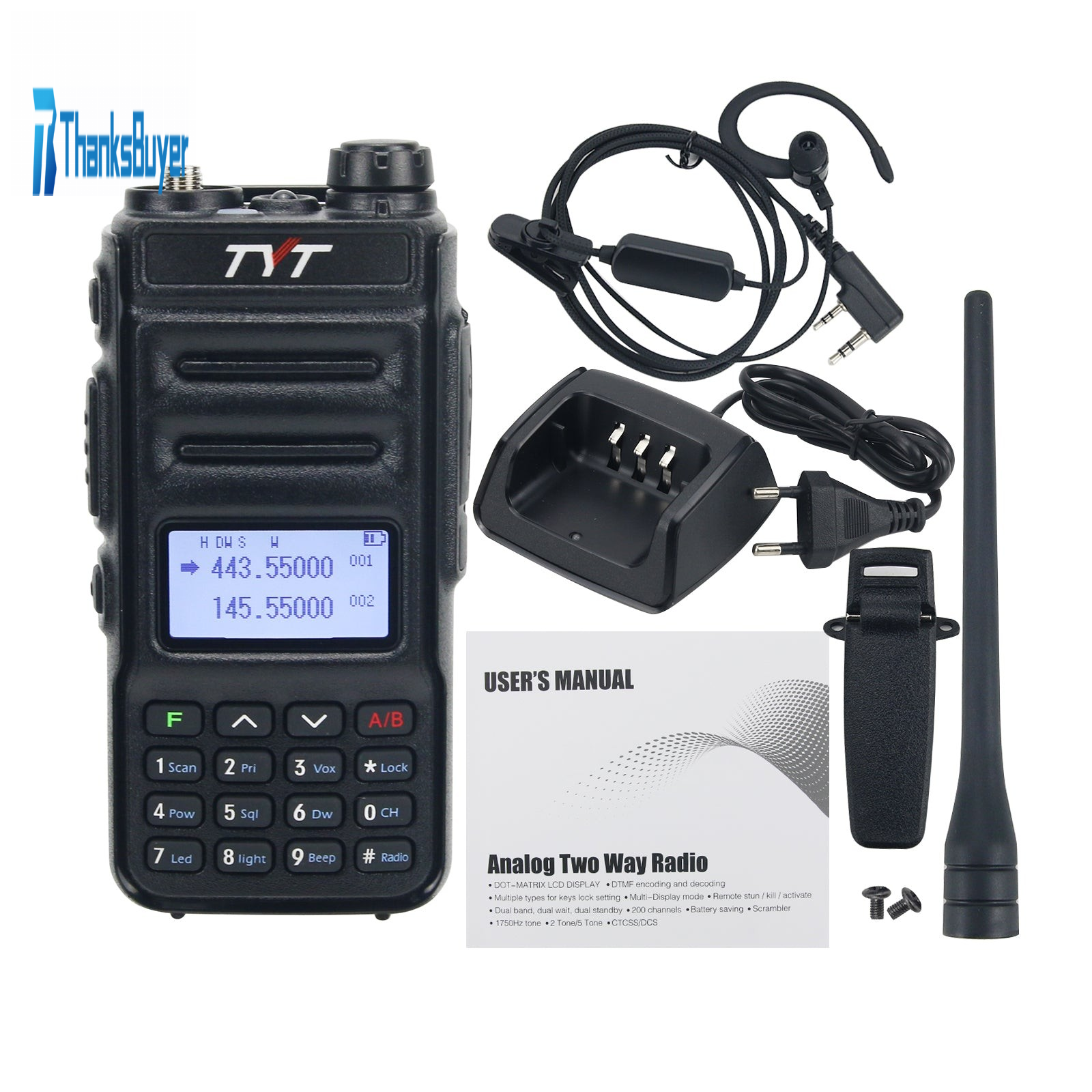 TYT TH-UV88 Walkie Talkie VHF UHF Radio 8W VHF UHF Transceiver With Earbud For Road Trips Business