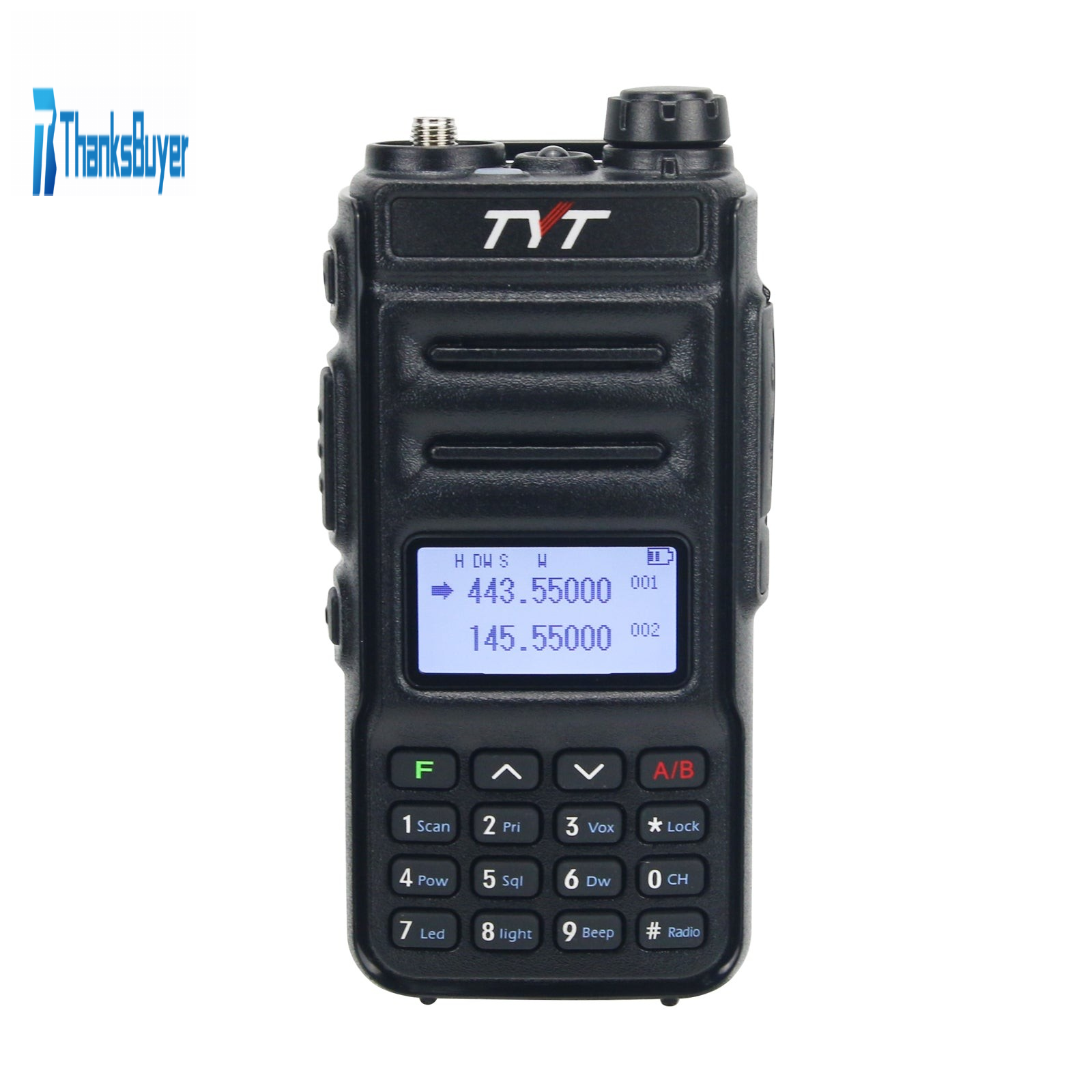 - Full dot matrix screen clearly displays power, frequency, status indication and channel.
