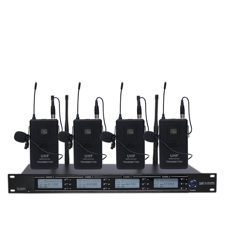 TZT U-84 Professional Lavalier Microphone System Cordless Microphone System w/ 4 Lavalier Mics