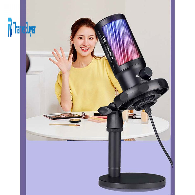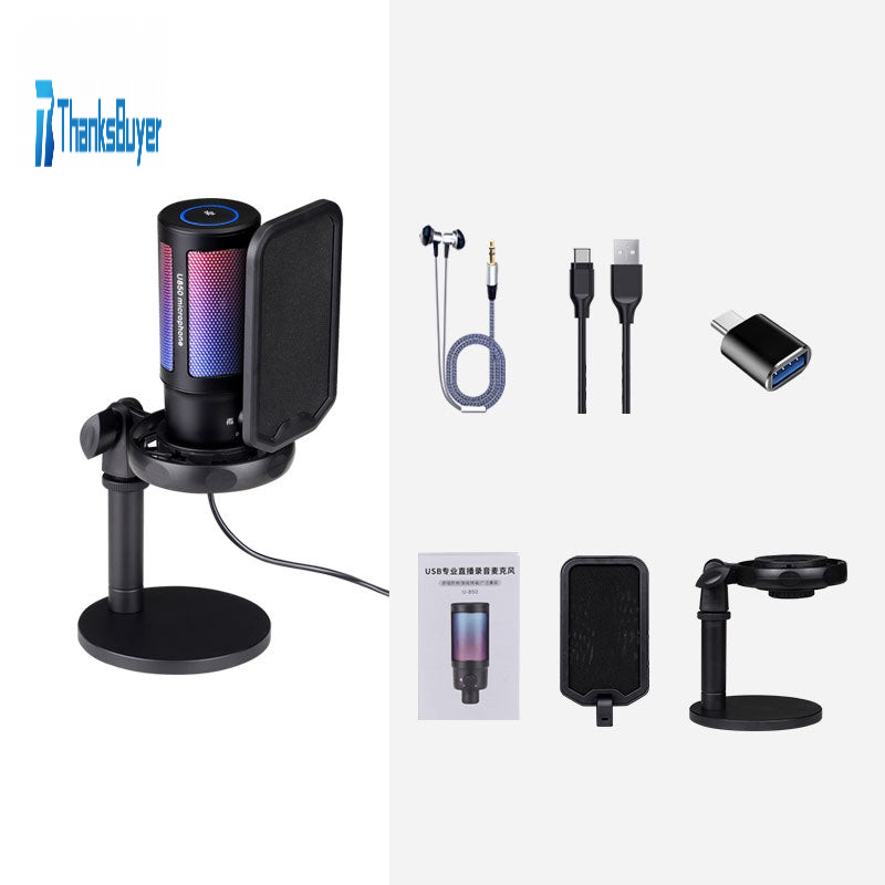 U850 Metal USB Microphone Kit USB Mic with RGB Light Round Base Stand for PC Livestreaming Game