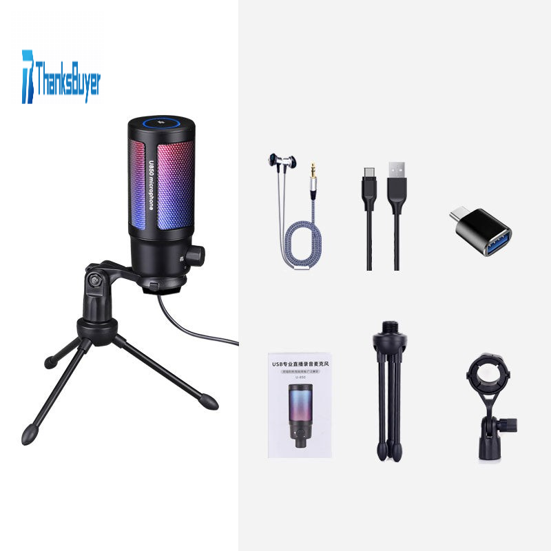 U850 Metal USB Microphone Kit USB Mic with RGB Light Tripod Stand for Desktop PC Livestreaming Game