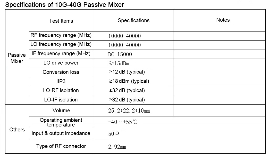 Ultra-Wideband Passive Mixer Frequency Mixer RF Mixer (RF/LO 10G-40G and IF DC-15G NF=12dB 15dBm)