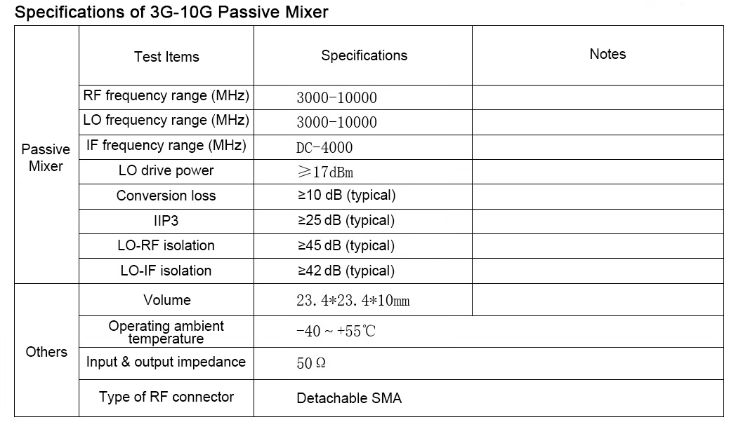 * RF/LO frequency range: 3G-10G