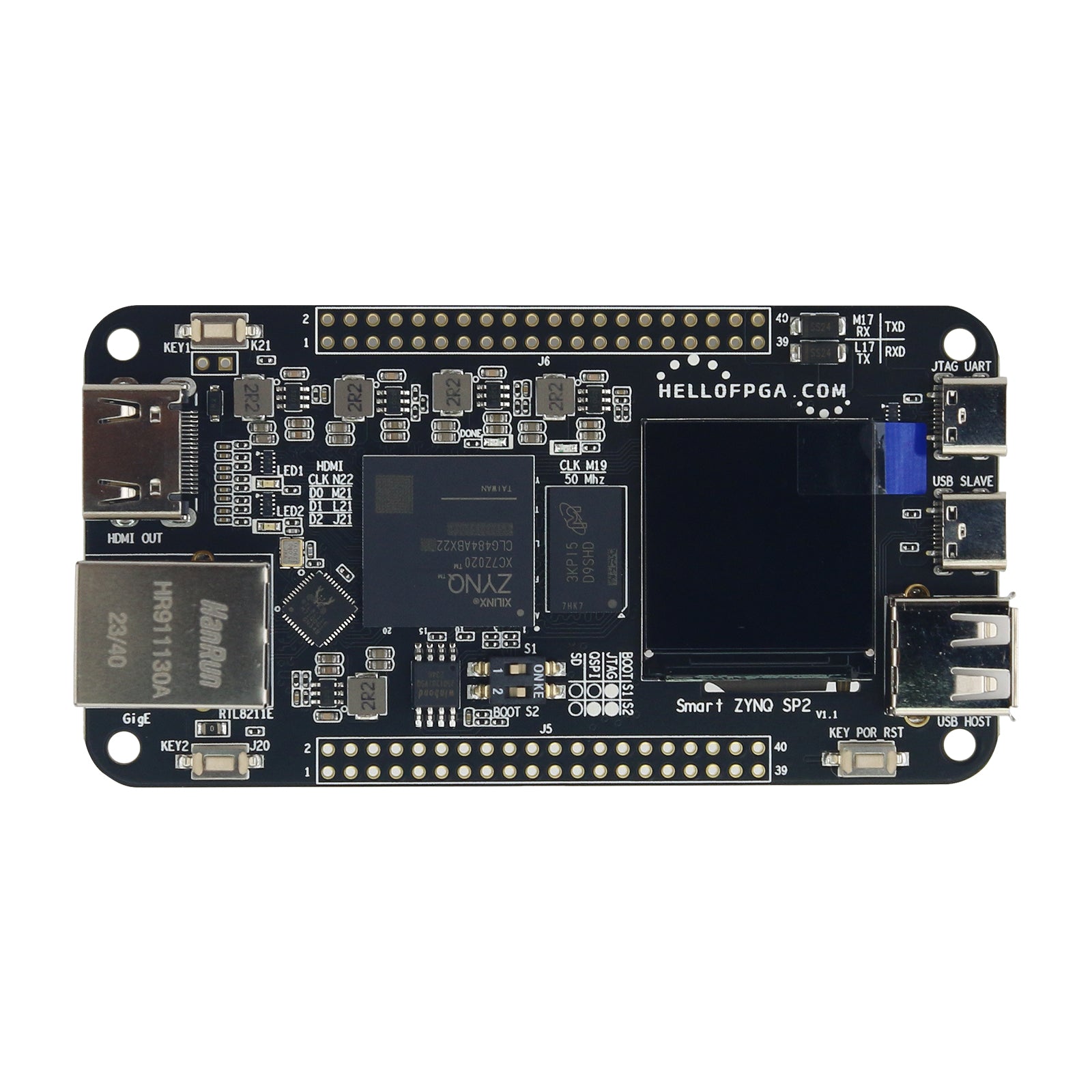 - The PL is connected to a 50M active crystal oscillator; HDMI and USB, and the downloader is connected to an ESD electrostatic protection device layer