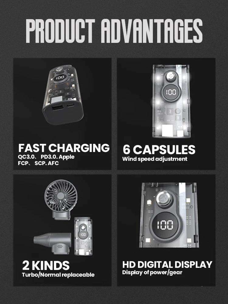 Upgraded Multifunctional Turbo Fan 100000RPM Violent Fan 5000mAHx2 Support Propellers/Turbines Switch
