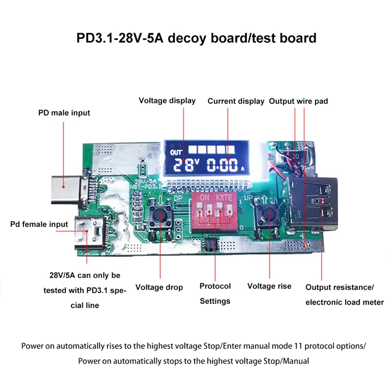 - Tip: If you need to test PD3.1, you must use wire rods that support PD3.1. Only PD2.0 3.0 with maximum 20V is not supported.