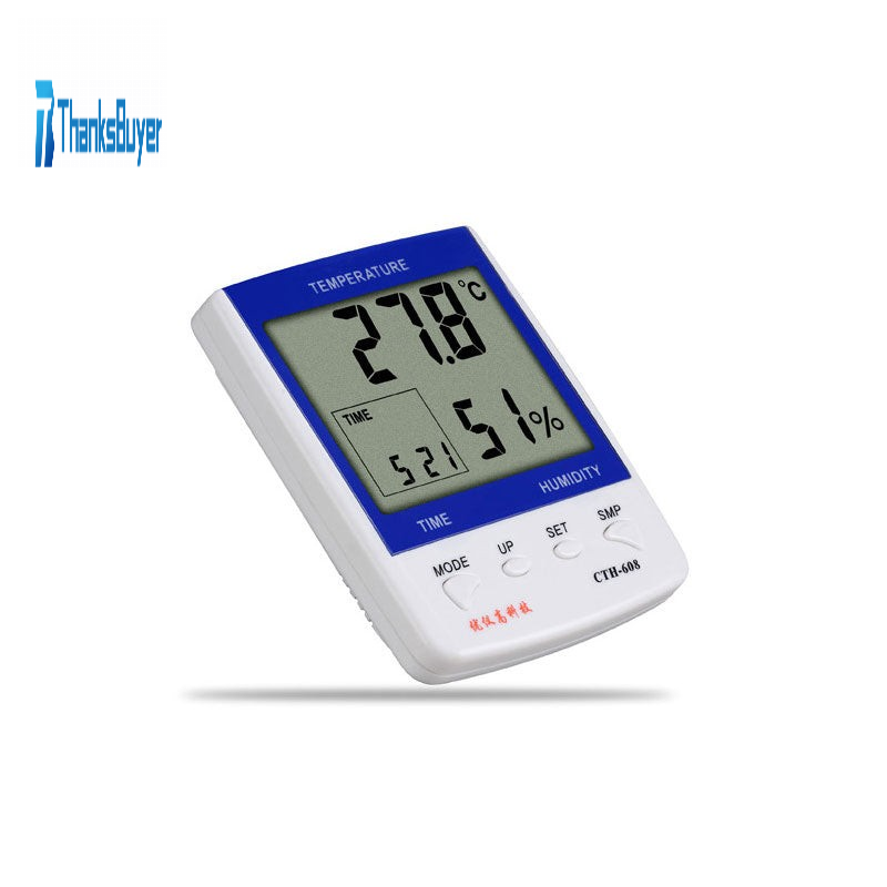 - Display temperature, humidity, and time. With alarm clock and memory functions
