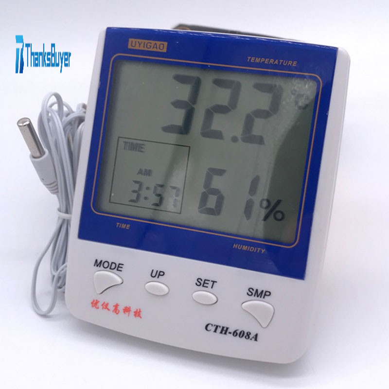 UYIGAO CTH-608A Thermo Hygrometer With Probe Indoor Temperature Humidity Meter Alarm Clock w/ Screen
