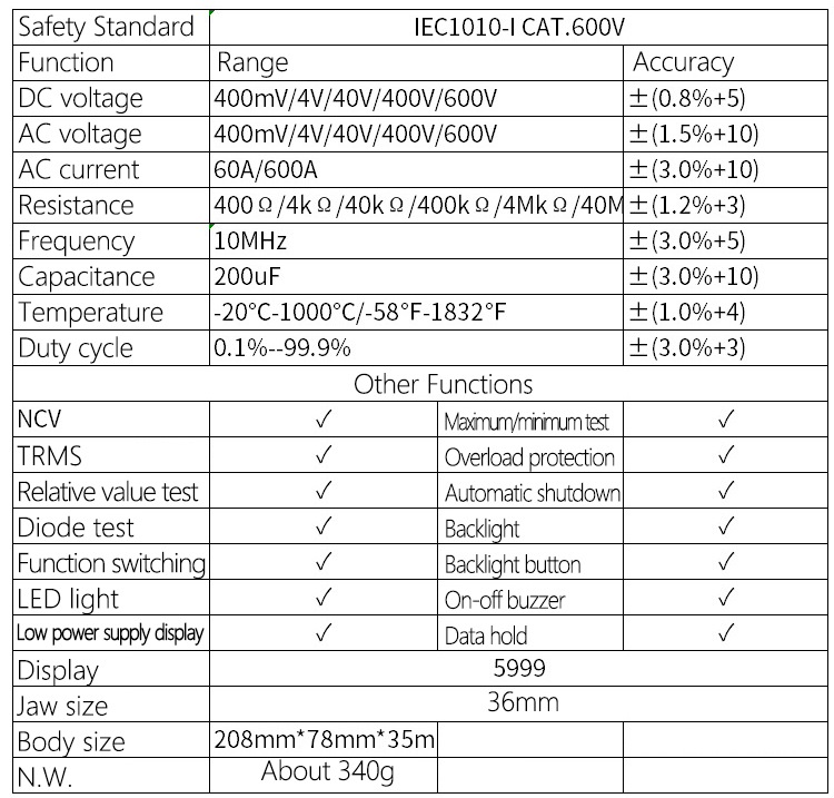 - Large range and wide range. DC/AC voltage: 600V/600V