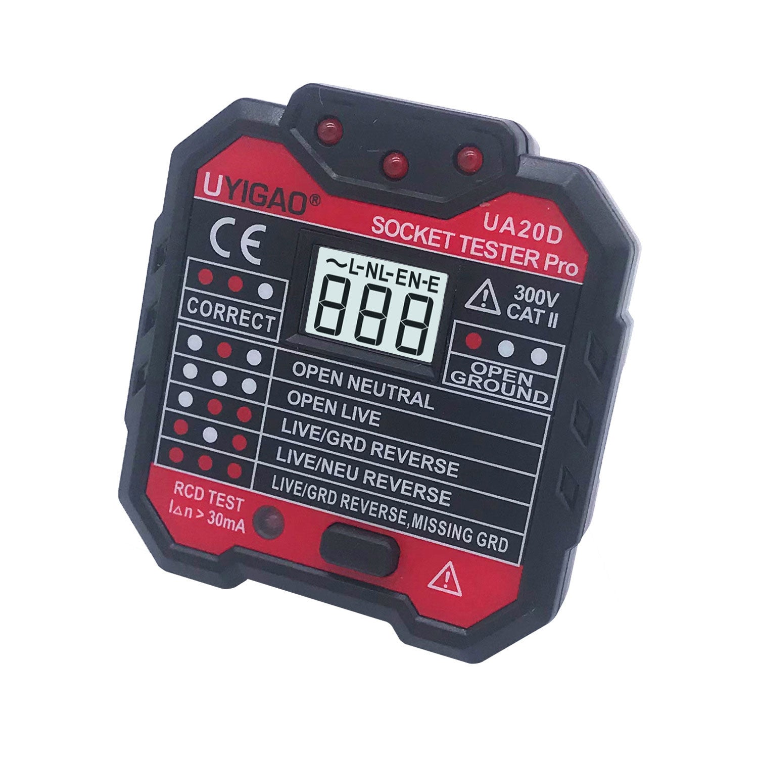 UYIGAO UA20D Socket Tester Pro Outlet Tester CAT II 300V With Backlit LCD Screen UK Standard