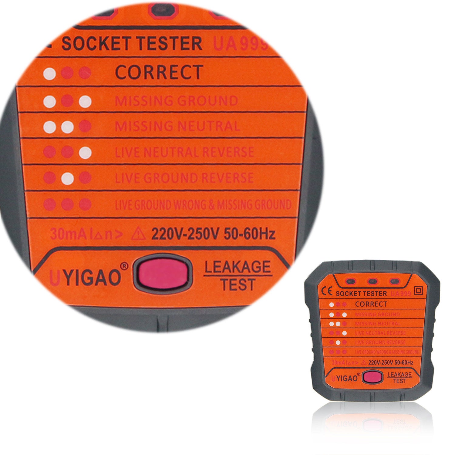 UYIGAO UA999 Socket Tester Outlet Tester Phase Detection Instrument 220V-250V 50-60Hz EU Plug