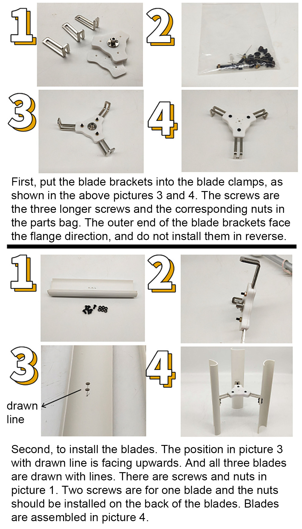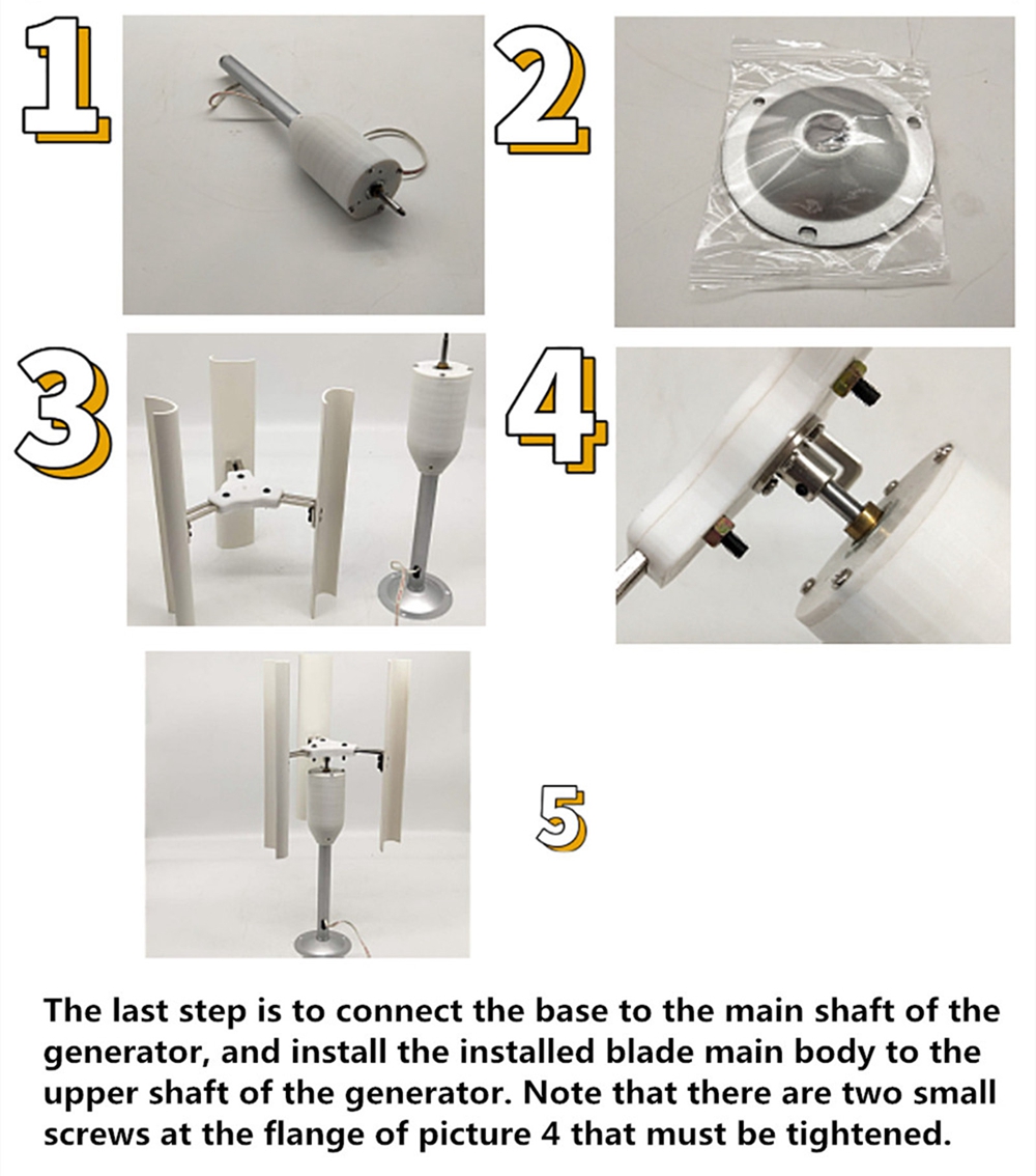 - All the blades of the generator have been disassembled for transportation. Please assemble the blades by screws after receiving the item.