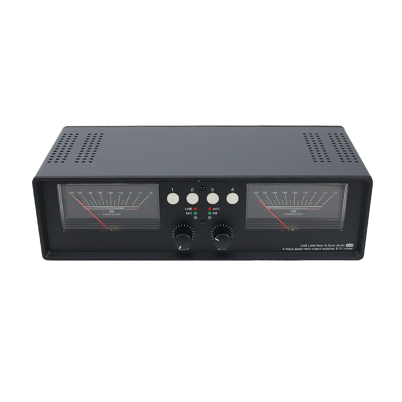 VU2-D LED Version MIC+LINE Dual VU Meter Audio Splitter Box 4-Way Switcher Sound Level Indicator