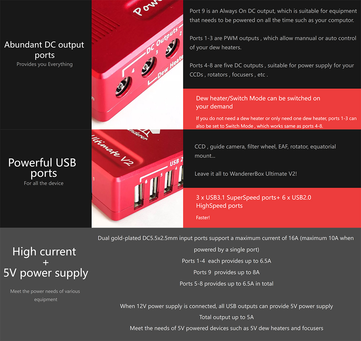 Wanderer Box Ultimate V2 Power Management Box USB3.0 Hub for Professional Astrophotography
