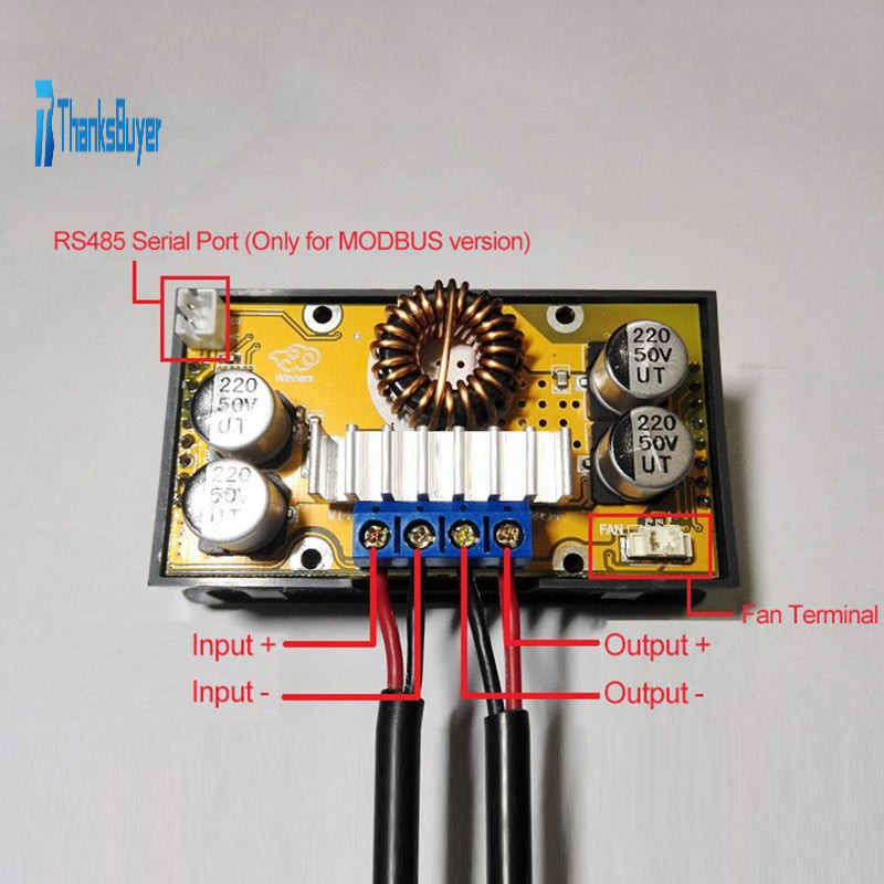 - Output current: 0.01A-5A continuously adjustable (please strengthen heat dissipation when the temperature exceeds 60℃. There are reserved fan installation positions and wiring terminals. If necessary, you can purchase the version with a fan)