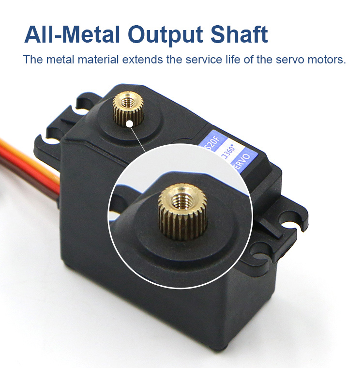 * The servo motors contain a microprocessor that amplifies the traditional 50 pulses per second signal to 300 pulses per second. The microprocessor also corrects the control angle to reduce dead zone size and provide higher precision.