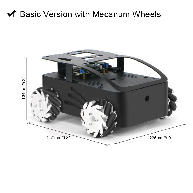 - Wheels: 75mm/3" aluminum alloy mecanum wheels